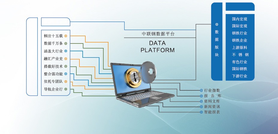 中聯鋼專注于以鋼鐵。原料等工業原料為主的大宗商品資訊與研究,為鋼鐵及上下游企業提供專業資訊、行情信息、電子刊物、草根調研、研究報告、決策咨詢、產業數據庫、網絡推廣、技術開發、會務培訓等全方位服務。